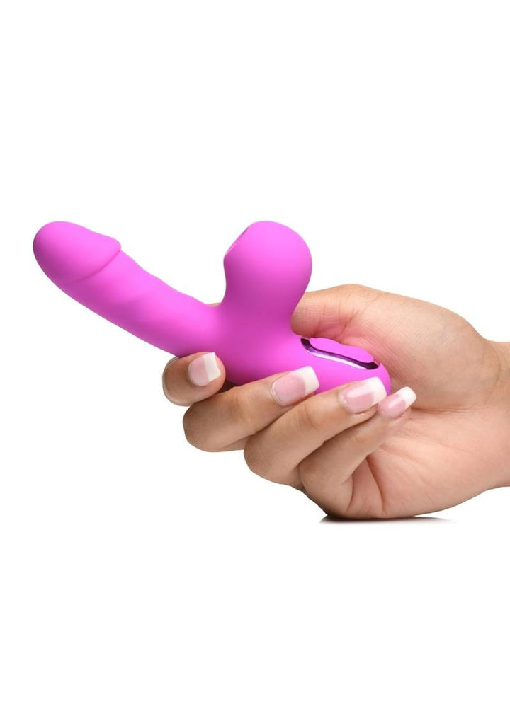 Get the buzz you've been begging for! The combination of internal penetration and clit-focused sensation is enough to push you over the edge of ecstasy! Indulge in 3 speeds and 7 patterns of clit suction from the curved arm of this rabbit vibe. Combine that with riding the thick, smooth shaft as it penetrates you 3 inches deep, stimulating your G-spot and buzzing you just the right way with 3 speeds and 7 patterns of vibration! Reach new heights of pleasure as you combine stimulating sensations with a rabbit toy built to satisfy! Recharge as needed via the USB cable provided. Use only with water-based lubricants for best results. Do not submerge underwater or take it in the shower. To clean, wash with warm water and mild soap, then rinse and spray with a toy cleaner before patting it dry.