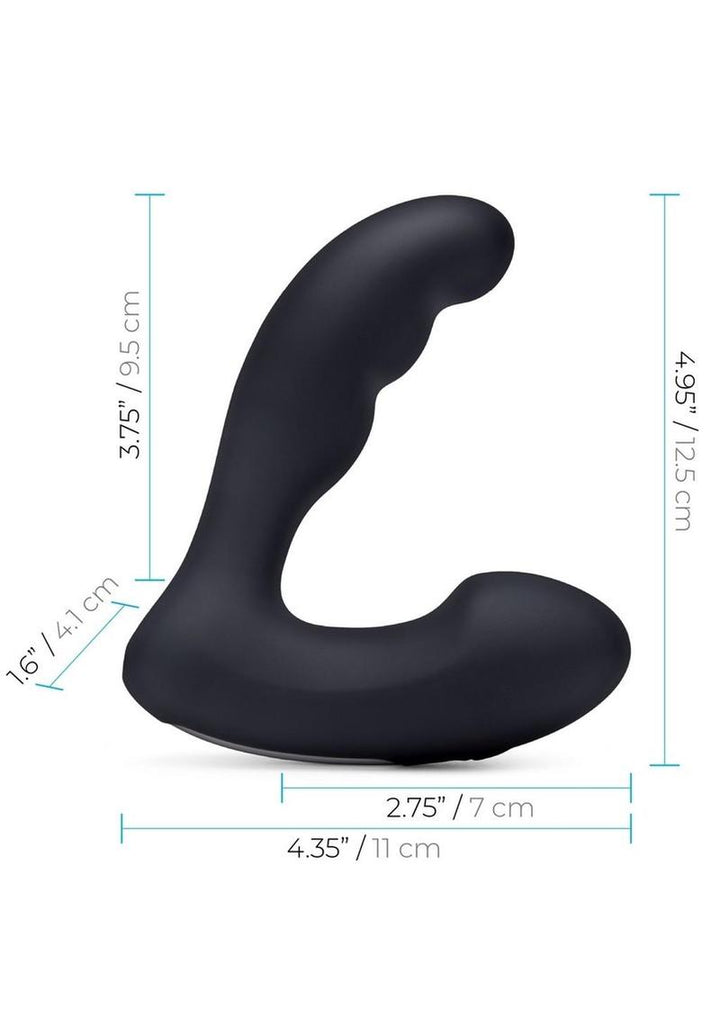 Satisfy your need for deep, multi-sensory stimulation with the Prober Prostate Massager from Blue Line. Provide simultaneous stimulation to your prostate and perianal area with independent motors that can pinpoint pleasure zones, or take your body on a journey of full forced fracking of vibrations. Give your sphincter the massage of a lifetime with a 4.5" waved shaft made with 100% body-safe silicone for tantalizing texture and continuous coital vibration. Independently controlled tip and base vibrations, send your body into euphoria at your own speed with 3 vibration intensities and 4 vibration patterns. With remote control capabilities, take the driver seat hands-free or give control to your partner for a kinky session of sexploration. The 100% silicone body and magnetic charge port makes the Prober safe to use with any water-based lube and super easy to clean with soap and water so you only need to worry about your pleasure.
