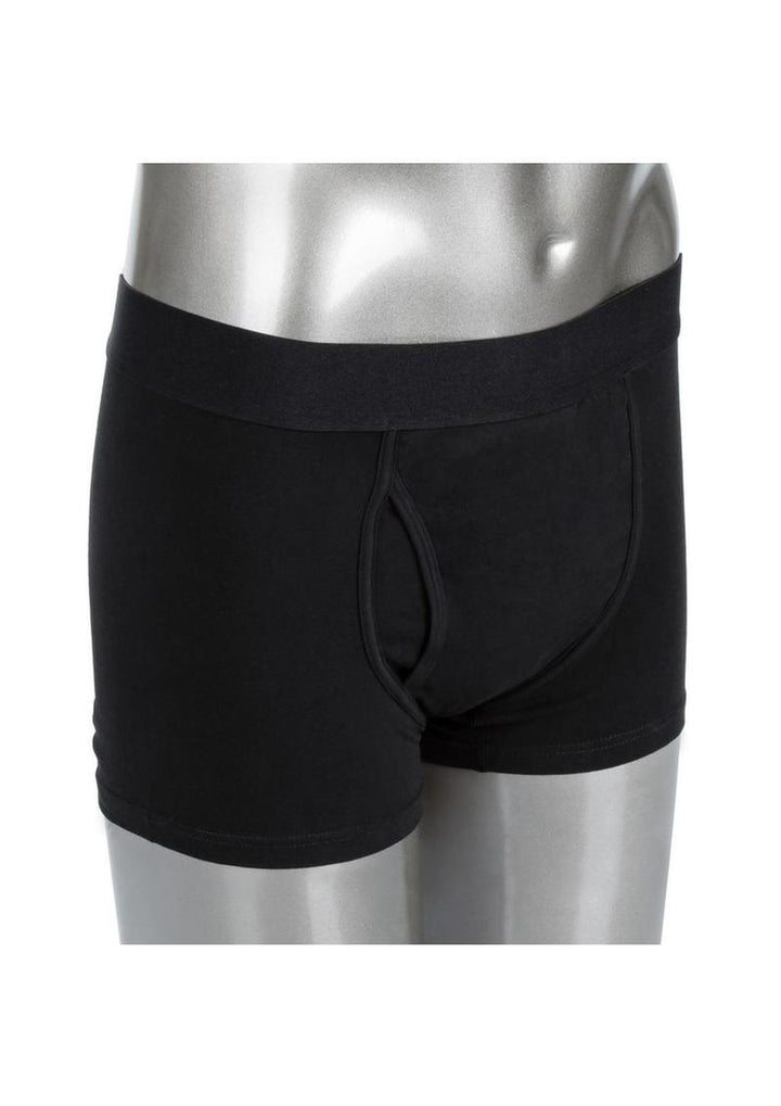 The Remote Control Boxer Brief Set is made for adventurous pleasure seekers, with an extra-comfortable boxer brief paired with a powerfully mini vibrator and discreet wristband controller. The stylish, yet discreet wristband controller makes it easy for you or your lover to control vibration intensity with the touch of a button. Whenever or wherever passion takes you, this passionate mini vibratorb s 32-foot radius range and 12 intense functions of vibration are ready for playtime. The discreet, form-fitting boxer briefs have 3 internal stimulator pockets for personalized stimulator placement. Made for superior comfort and extended wear, these boxers are made from soft, stretchy fabric with an extra wide waistband. Whether you choose to stay in control or you have left pleasure in your partnerb s hand, this powerful teaser is sure to deliver knee-shaking sensation. From blushing beginners to erotic experts, this playful set adds versatile vibrations to any toy box. Recharge your passion in under 1 hour with the provided USB cable for up to 45 minutes of low-speed vibration or 40 minutes of high-intensity stimulation.