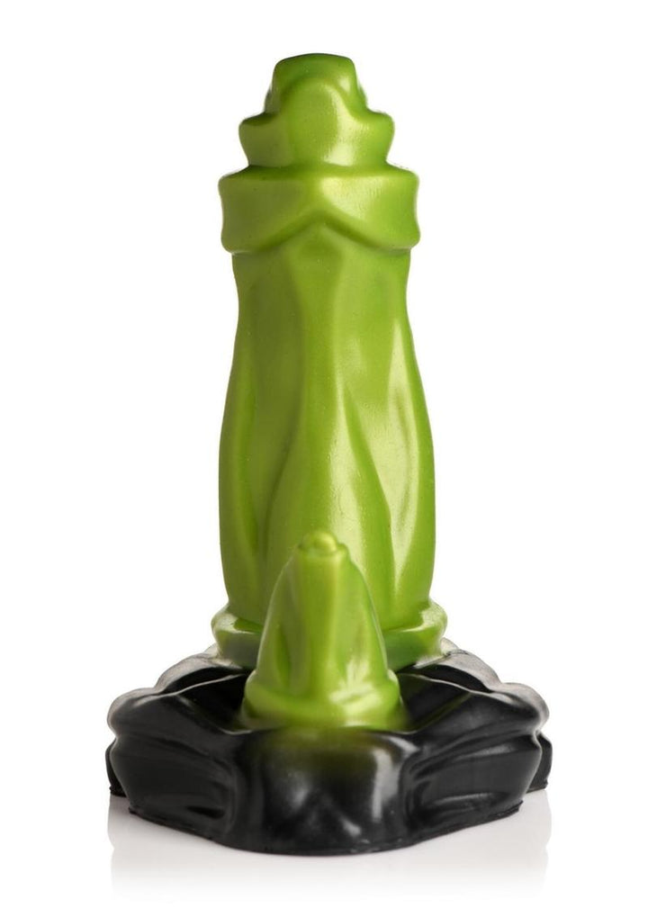 This massive Orc rod has an extra surprise at the base! The green, firm yet flexible shaft has a small knobbed tip that flares out and then nearly doubles in width as you receive the full shaft! At the base of the dong is an extra horn designed to stimulate your clitoris or perineum for dual stimulation! Enjoy the smooth ridges of this monster rod as this creature ravages you! The wide base provides powerful suction so you can go hands-free by placing it on any flat surface to keep it in place. You can also combine it with a compatible strapon harness for pegging play! Made out of premium, phthalate-free silicone, it has a firm core and soft, silky surface. Use only with water-based lubricants for best results. After play is over, wash the dildo with warm water and soap and use a toy cleaner to spray clean. Wipe dry and store in a cool, dark place out of direct sunlight.