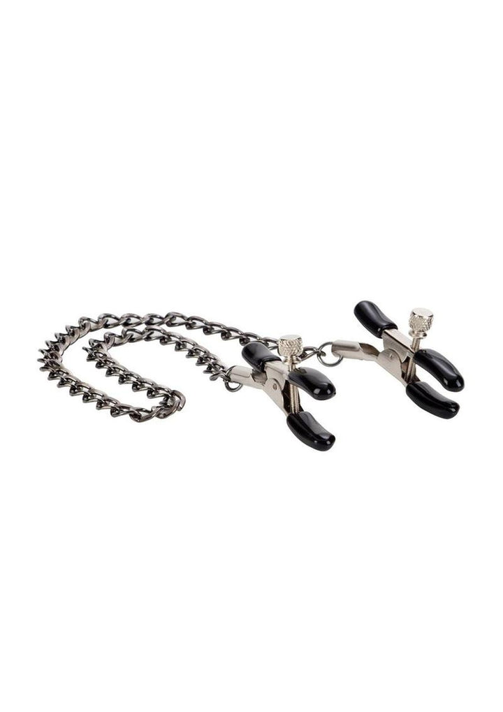 First Time Fetish A High Quality Collection of Playful Fetish Gear Designed for First Time or Experienced Users.Fully adjustable nipple clampsSoft, comfortable padsNickel-Free Iron (chain, clamps, screws) Phthalate-Free PVC (tips)12.75/32.5 cm (chain)2.25/5.75 cm (clamp)