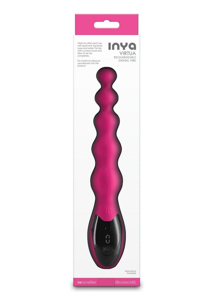 Transition to the era of digital technology with Virtua by INYA. A sophisticated vibrator, featuring graduated beads to generate erotic pleasure to each erogenous zone. Keep track of the speeds and functions with Virtuab s sleek digital screen. Made from premium body-safe silicone and ABS, Virtua is rechargeable and water resistant. Suitable for use with all lubricants including silicone. 3 speeds 6 functions 9 modes. Waterproof Rating - IPX7.