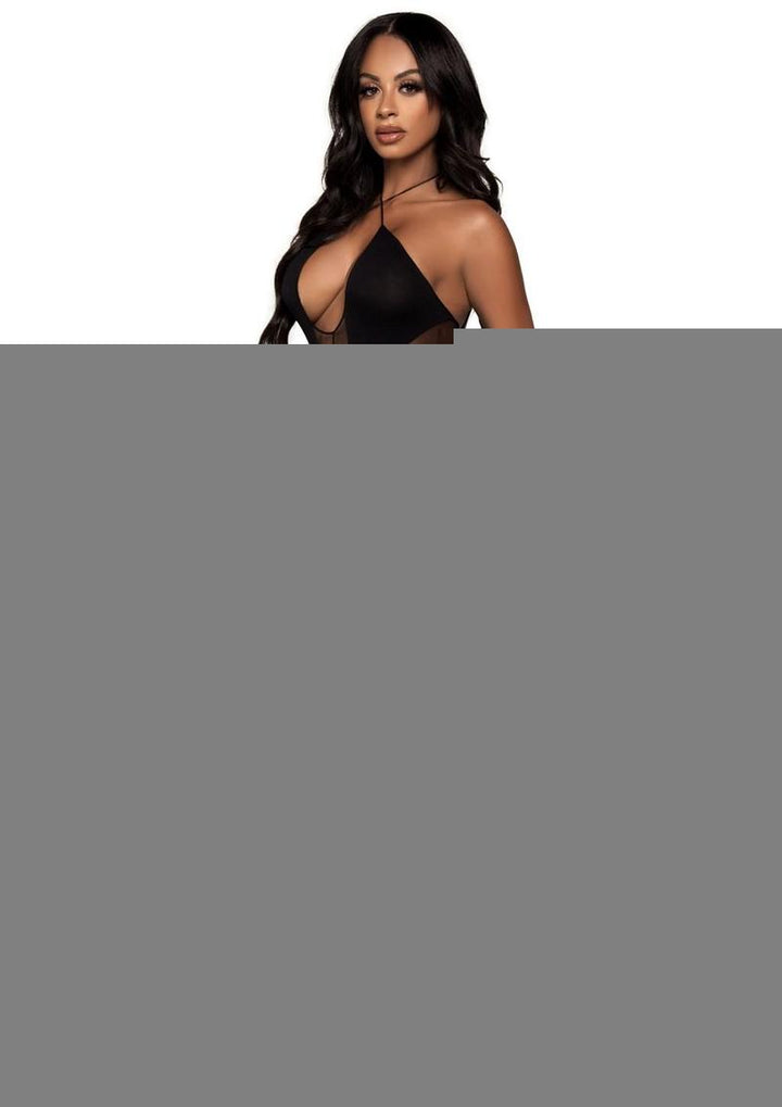 Opaque and sheer keyhole twist halter bodystocking. O/S Black