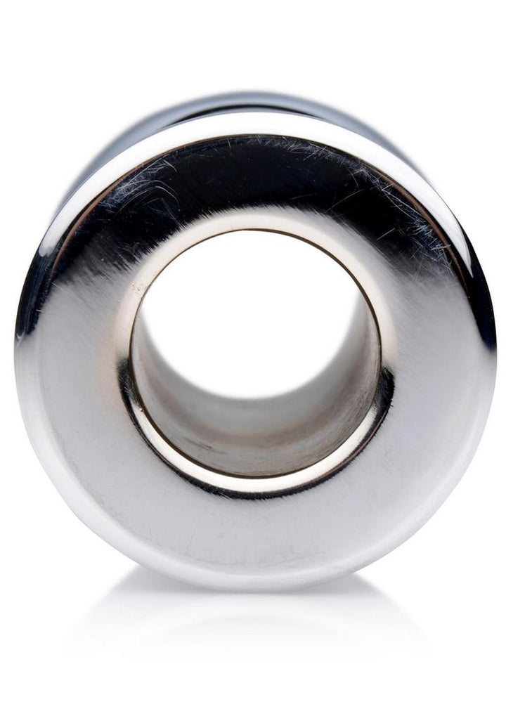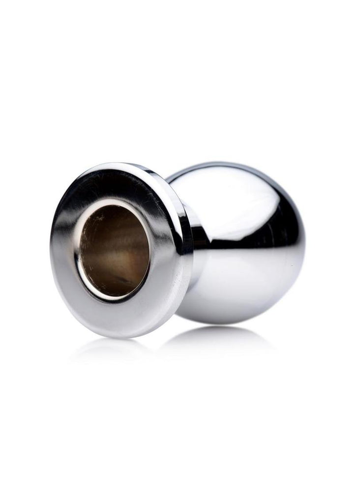 Look deep inside with this hollow anal plug made of metal! Use it with a partner to give them a glimpse into you most intimate regions, or see what can fit into the center tunnel. The nickel-free aluminum alloy facilitates a smooth insertion as this anal dilator spreads you open. Because it is non-porous, it can be used with any type of lubricant and sanitizes thoroughly with warm water and mild soap or toy cleaner.