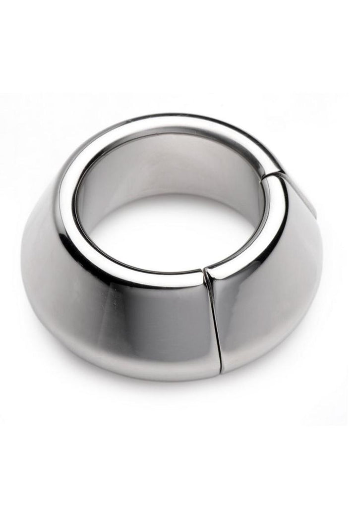 Made of heavy-duty stainless steel, this parachute-style ball stretcher closes with a powerful magnet around your scrotum. Experience 8.6 ounces pulling down on your sensitive balls while you masturbate, have sex, or get teased and tormented by your partner. Gravity will take its toll, creating the tugging sensation you crave and amplifying any sexual experience. The chrome-plated stainless steel is nickel-free, non-porous, and easily sanitized with mild soap or toy cleaner after use.