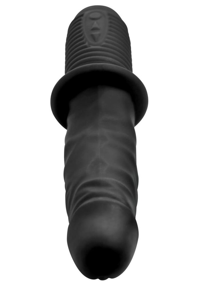 This big black boner is rechargeable for powerful vibration and thrusting action! Grab the handle and pound yourself, or your partner, into ecstasy! The ribbed silicone hilt allows you to get a secure grip while the motor does its job. Treat your orifice to 7 levels of thrusting as the supple, veiny shaft pumps up and down on its own! Meanwhile, a separate button allows you to play with 3 speeds and 7 patterns of vibration. The premium silicone material is non-porous and phthalate-free. This waterproof pleasure tool is easy to clean with mild soap or toy cleaner. Do not use with silicone lubricants.