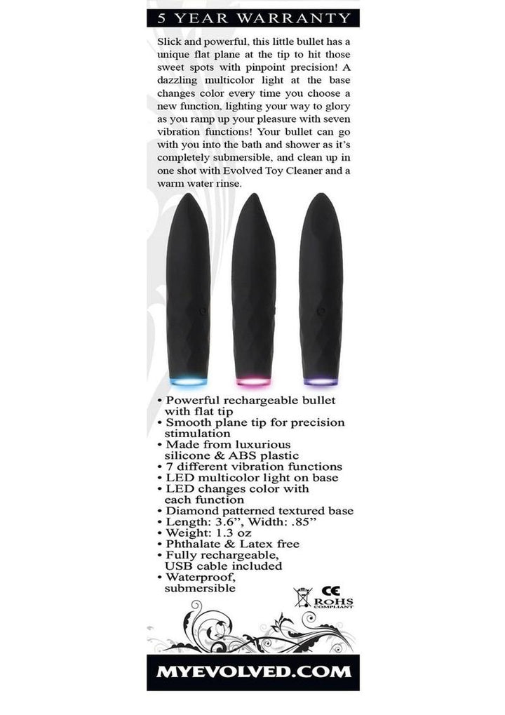 Your bullet can go with you into the bath and shower as it's completely submersible, and clean up in one shot with Evolved Toy Cleaner and a warm water rinse.