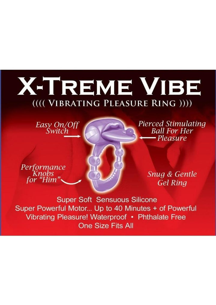 One size fits all Merely place the pliable ring at the base of the penis, turn on the switch, and let the sensual and titillating vibrations boost you and your partner into erotic euphoria! experience to new heights. XTREME VIBE- Tongue Collection Please & Tease your partner into b Erotic Blissb with the Xtreme Vibe Pleasure Ring Collection. Comes in 3 Erotic Styles to choose from to fit the styles and desires to pamper your lover into an b Erotic Frenzyb Collect all 3! Pierce Tongue, Forked Tongue Nubbie Tongue Super Soft sensuous Silicone Super Powerful Motor...up to 40 Minutes + of Powerful Vibrating Pleasure!