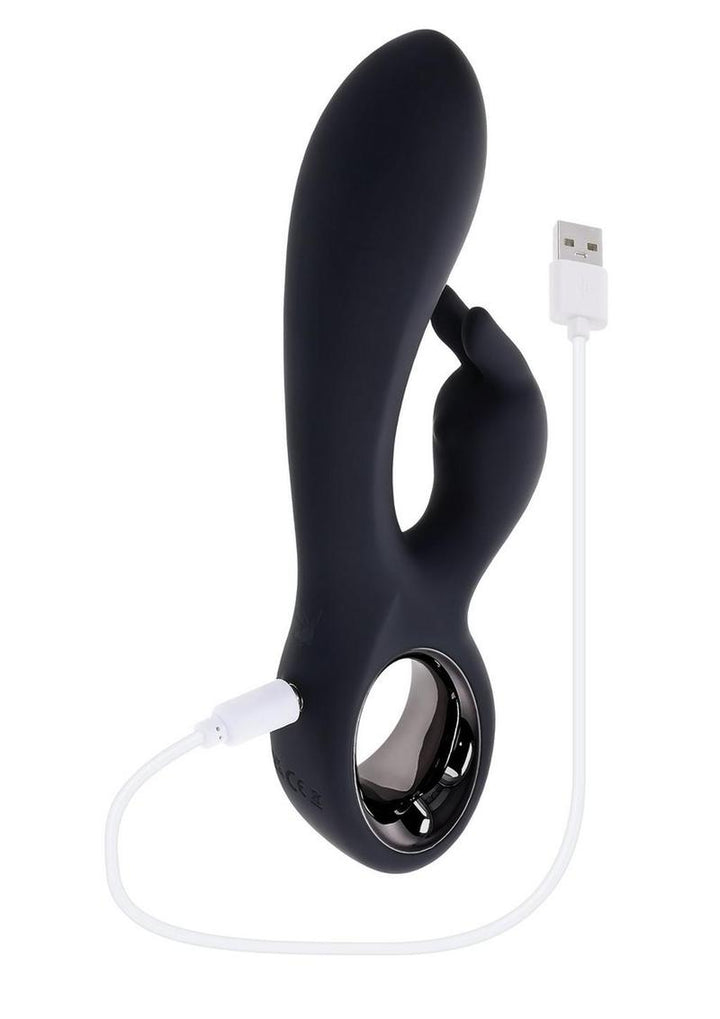 Late Night Bunny is the perfect excuse to call it a night! This powerful dual Vibrator is always ready for a late-night booty call with its 2 state-of-the-art motors that work independently for a custom dual experience – one in the gently curved swelling main shaft, and one in the hard-working rabbit. Made from sleek black body-safe silicone with a stylish and comfortable chrome ring handle, both shafts are flexible to move in harmony with your body. Discover the pleasures that await you after dark!