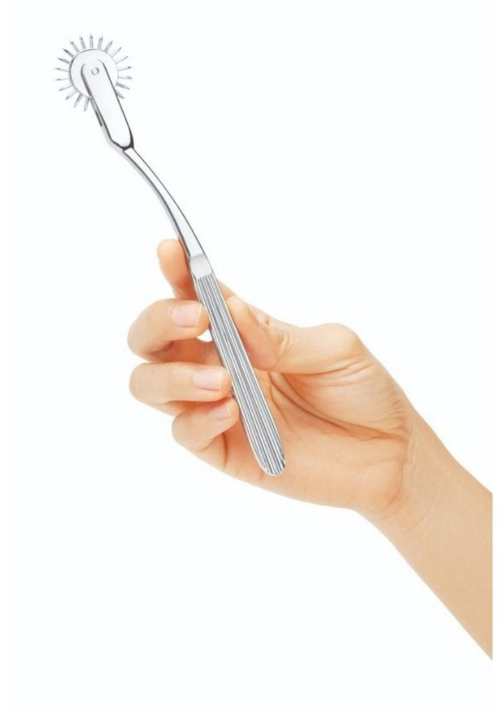 Made of hypoallergenic zinc alloy, its silver finish adds a sleek touch to the exciting sensation it provides. Known for its stimulating touch, this pinwheel intensifies sensations for those seeking a unique adventure. The easy-to-grip handle ensures precise control as you explore the tantalizing prickling feel on the skin. The cool, smooth surface of the zinc alloy creates a sensual contrast against the skin, enhancing every tickle of its pointy tips. Its single reel design provides concentrated sensation, making it ideal for pinpoint exploration. Take your intimate moments into uncharted territories of pleasure with this must-have tool for sensual exploration.