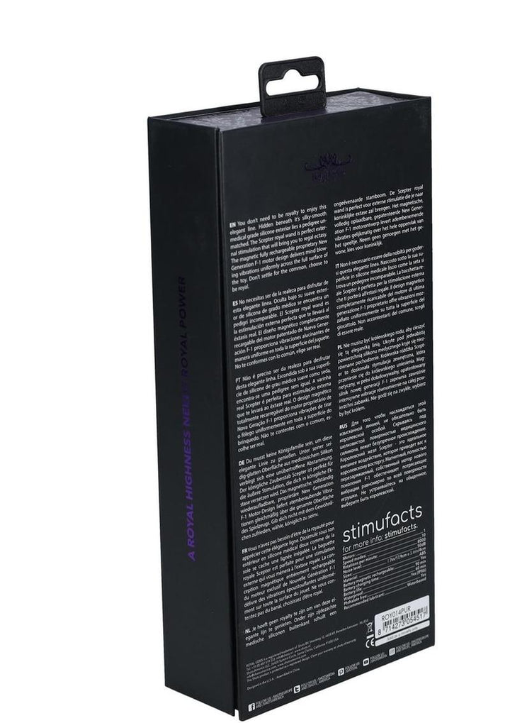 You donb t need to be royalty to enjoy this elegant line. Hidden beneath itb s silky-smooth medical grade silicone exterior lies a pedigree unmatched. The Scepter royal wand is perfect external stimulation that will bring you to regal ectasy. The magnetic fully rechargeable proprietary New Generation F-1 motor design delivers mind blowing vibrations uniformly across the full surface of the toy. Donb t settle for the common, choose to be royal.