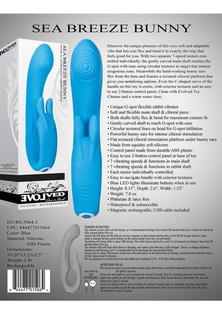 Sea Breeze Bunny Rechargeable Silicone G-Spot Rabbit Vibrator
