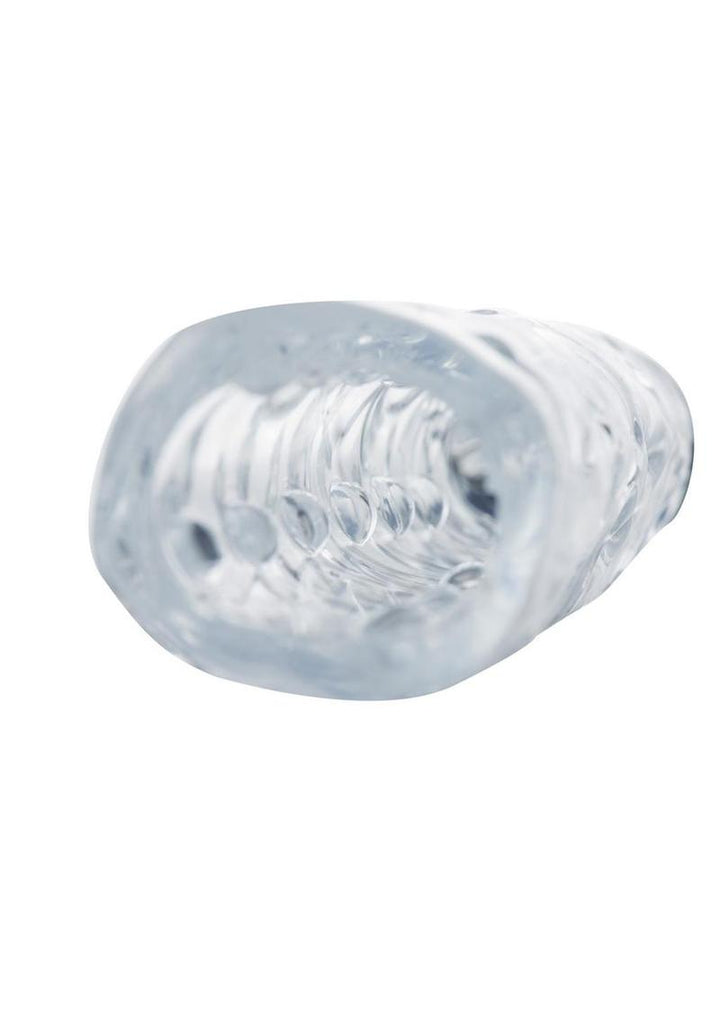 Both the exterior and interior of this sleeve are textured for intense stimulation! The outside of this sleeve features soft and dynamic nubs to enhance your thrusts into your partner, while the inside features smaller nubs and textured ribs to rub your shaft as you play. Use plenty of water-based lubricant on the outside, inside, and along your shaft for a slick and pleasurable sensation.