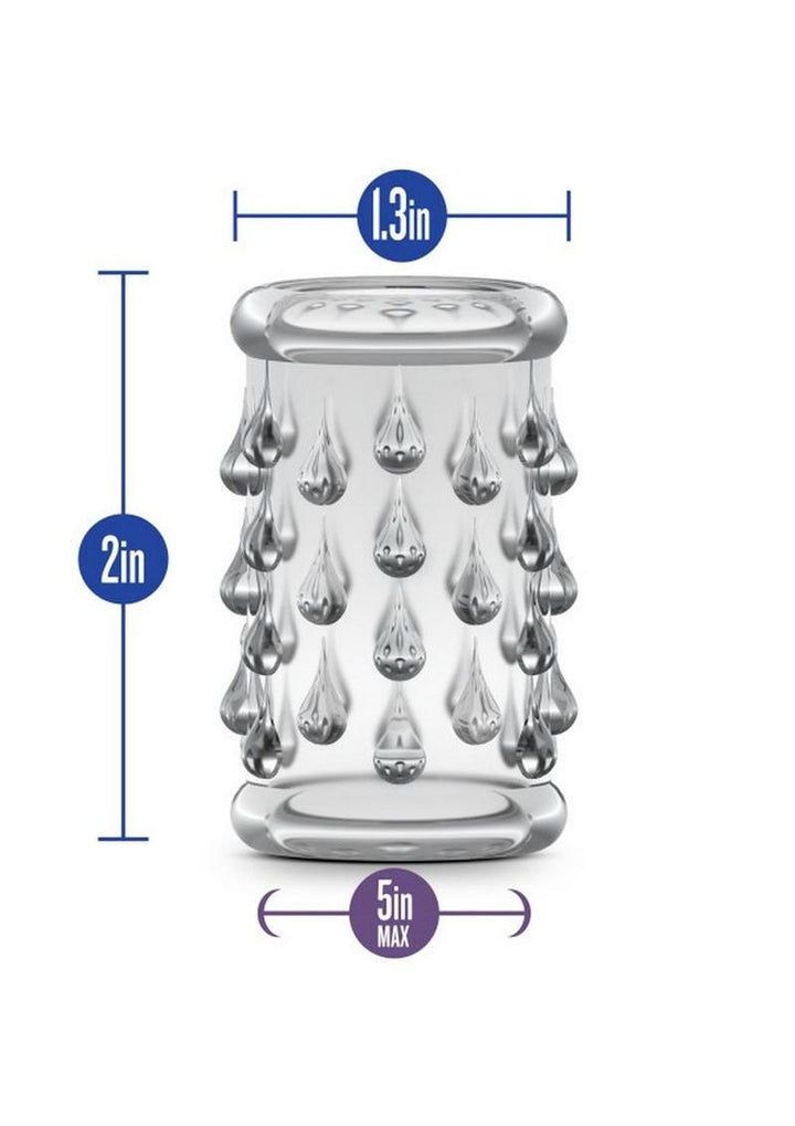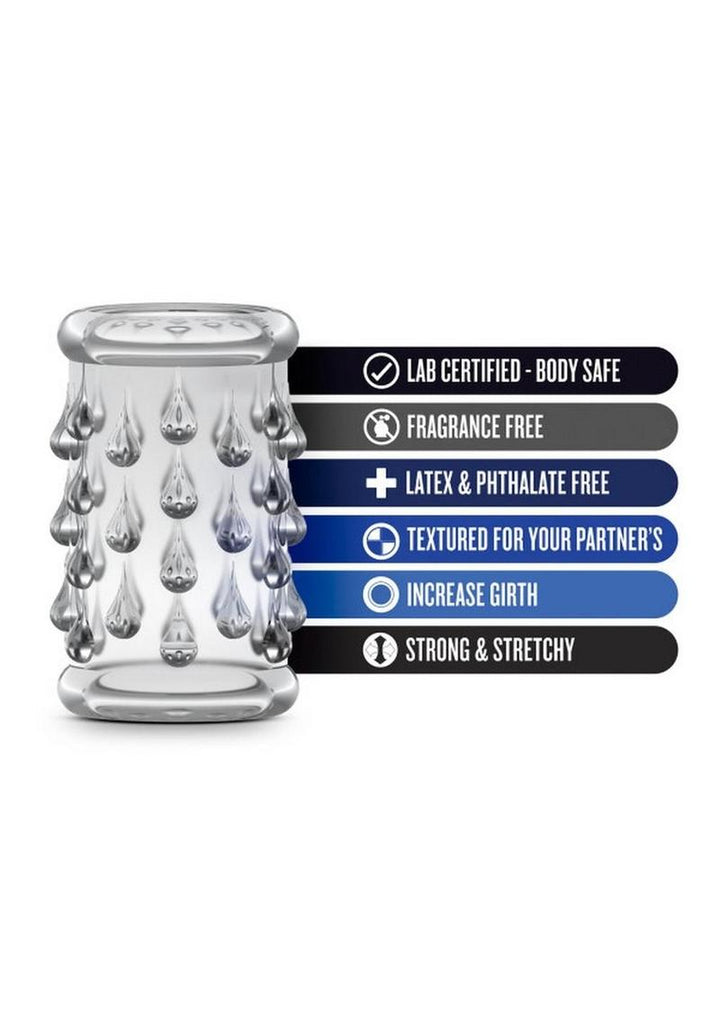 This stretchy enhancement sleeve is a simple way to add a new level of pleasure and sensation to your penis, favorite dildo or vibrator. Just slide the sleeve over your shaft. Stack them for even more pleasure. Buy more so you can mix and match and stack them to create a unique erotic experience every time. Easy to use, and stays in place. Measures 2" Length x 1.4" Width. Comfortably stretches up to 3" Wide. Maximum stretch to 5" Width. Lab tested body safe. Silicone, water based, hybrid lube compatible.