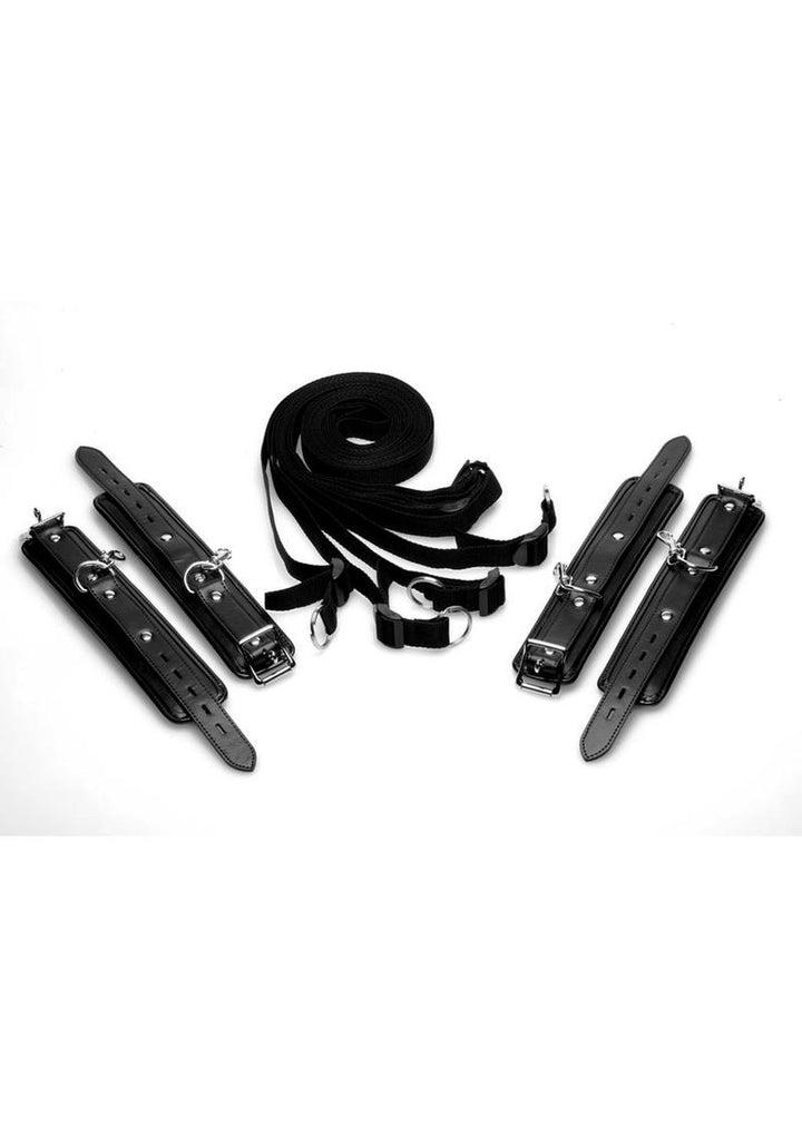 Strap your partner down to the bed and turn them into your personal submissive pet! Instantly transform your bed into a piece of bondage furniture, perfect for opening your lover up, spread eagle! They will be writhing in ecstasy as you please, tease, and torment their helpless body. The sturdy cuffs are lined with comfortable padding so that you play things wrists and ankles will not grow sore as play sessions last long into the evening. The buckle allows for a wide range of adjustment to fit most sizes, and also locks so that your lover will feel even more deliciously trapped and confined. Just slide the restraint set under your mattress and pull the cuffs and straps up at the corners. Adjust the straps as needed to fit all bed sizes. Spice up your sex life and you will never want to get out of bed!