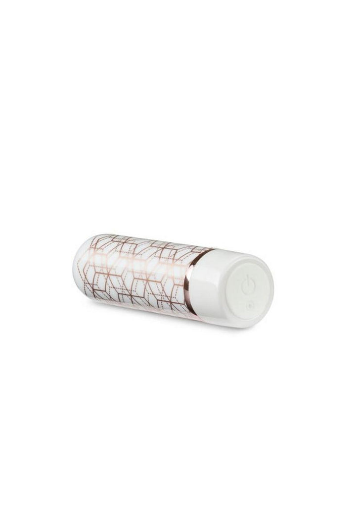The Collection Glitzy Geo Bullet's strength will shine! Geo's Rose Gold accents bring style to your playtime. Discover 10 powerful vibration functions packed inside Glitzy Geo's compact body. Discreet, simple to store, and a perfect travel companion! Glitzy Geo is rechargeable, body safe, splashproof, and easy to clean.