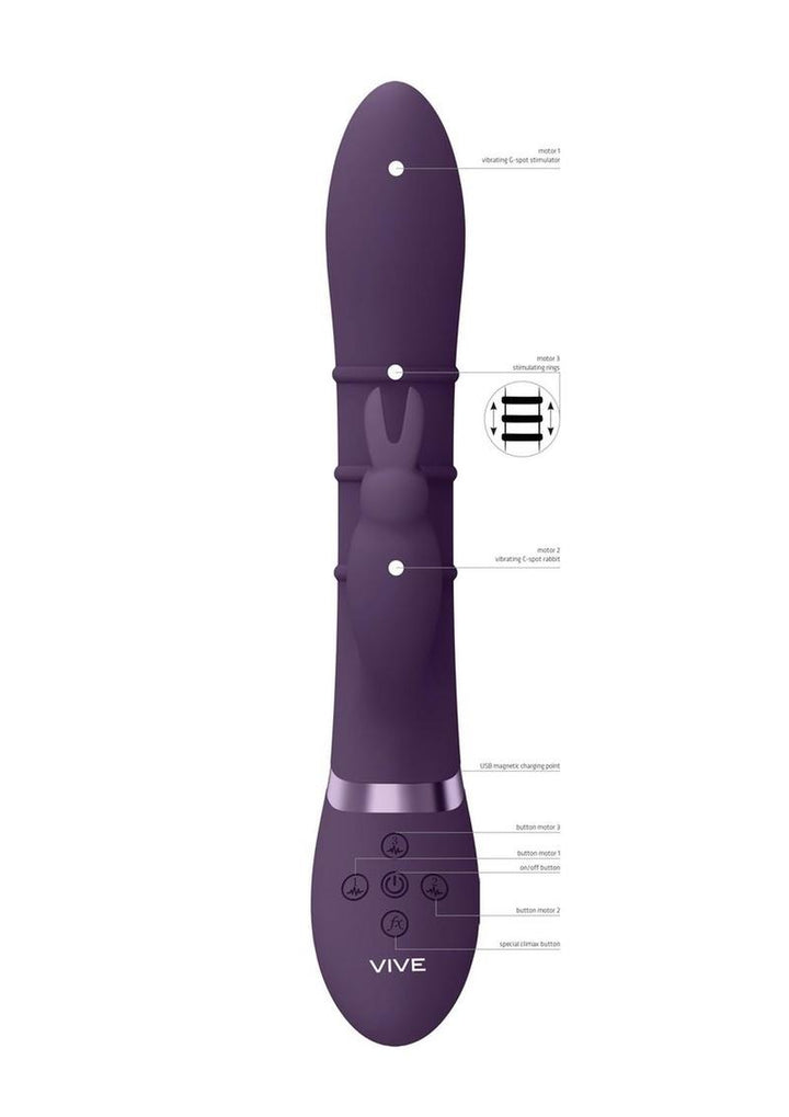 Vive Kura Rechargeable Silicone Triple Motor Up and Down Vibrating Triple Ring Rabbit